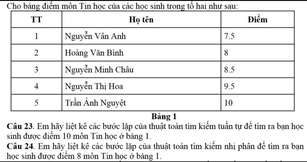 Bước `5:` So sánh điểm của bạn Trần Ánh Nguyệt (`10`) với `10` → Đúng → Tìm thấy bạn cần tìm.