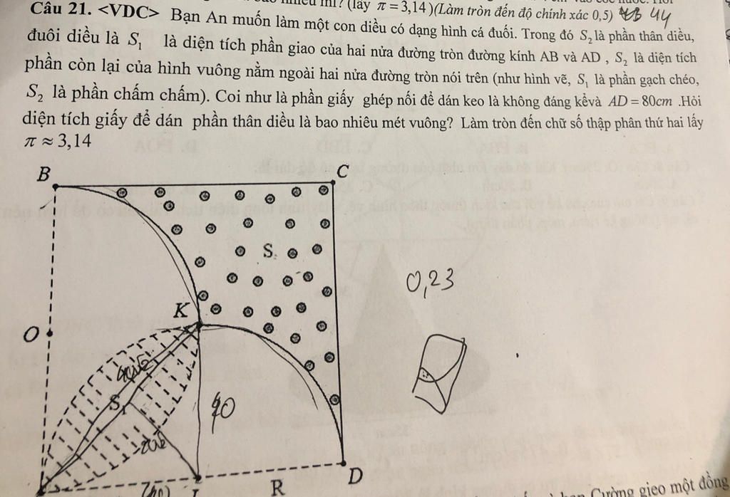 đuôi diều là S là diện tích phần giao của hai nửa đường tròn đường kính AB và AD, S, là diện tích