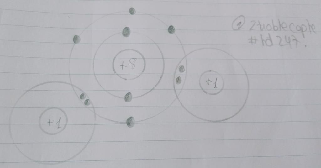 Trong liên kết phân tử `H_2O`.Mỗi nguyên tử `H` góp chung `1` electron với nguyên tử `O` để tạo thành cấu trúc bền vững lớp ngòai cùng có `2` electron giống khí hiếm `He`,nguyên tử `O` góp chung `2` electron để tạo thành cấu trúc bền vững lớp ngòai cùng có `8` electron.