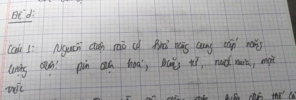 Câu `1:` Nguồn điện có khả năng cung cấp năng lượng điện là:
