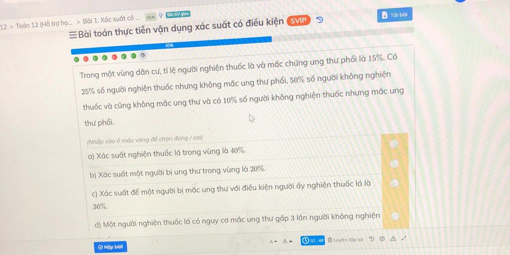 =Bài toán thực tiễn vận dụng xác suất có điều kiện v