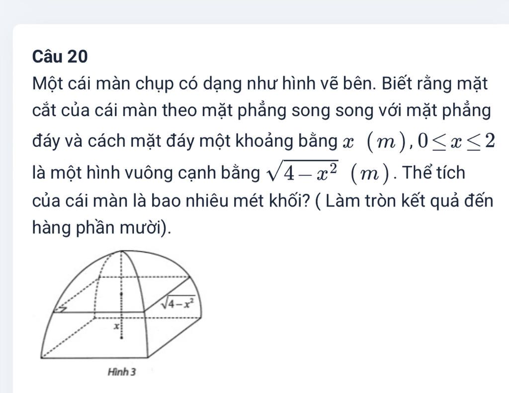 Diện tích của mặt cắt ngang tại độ cao $x$ là: