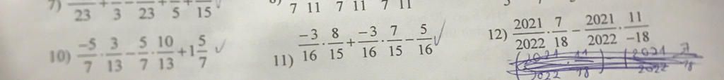 `10)` `-5/7. 3/13-5/7. 10/13+1 5/7`