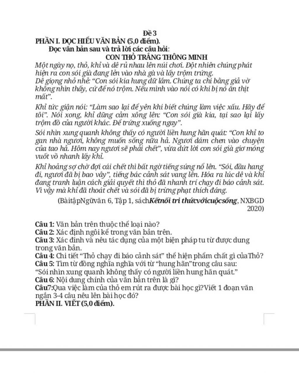 Đọc văn bản sau và trả lời các câu hỏi: