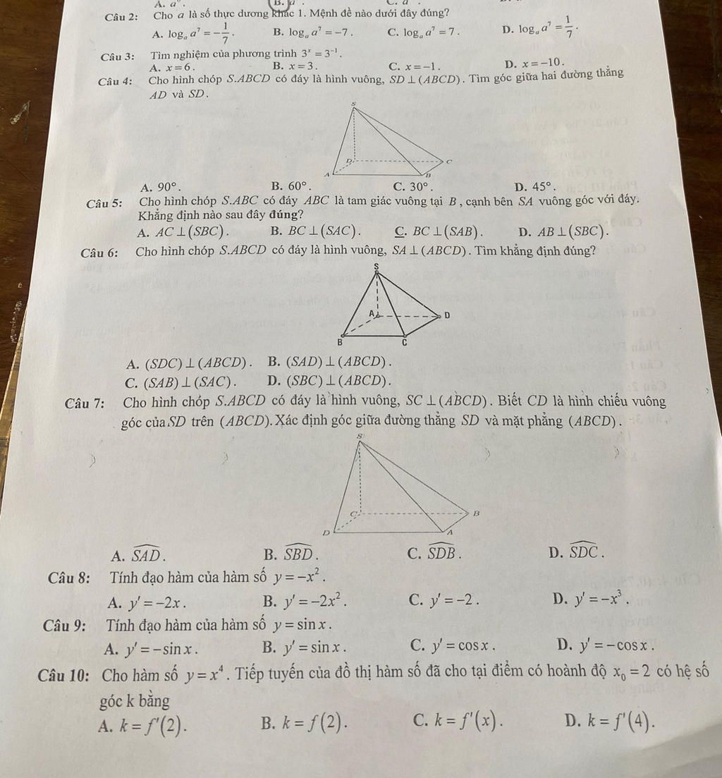 Cho hình chóp S.ABCD có đáy là hình vuông, SD 1 (ABCD). Tìm góc giữa ha ...