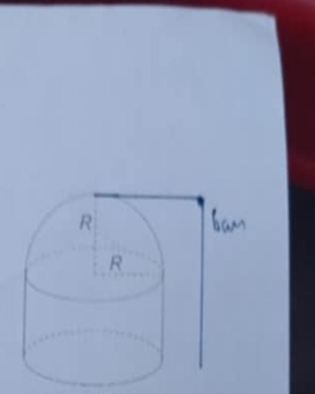 Một khối thủy tinh có cấu trúc gồm một phần là hình trụ bán kính đáy R, chiều cao 6cm và một phần là hình bán cầu bán kính R (như hình vẽ ). Cho biết diện tích mặt xung quanh của khối thủy tinh là 120π cm2 . Tính thể tích khối thủy tinh ( kết quả làm tròn đến hàng đơn vị )
