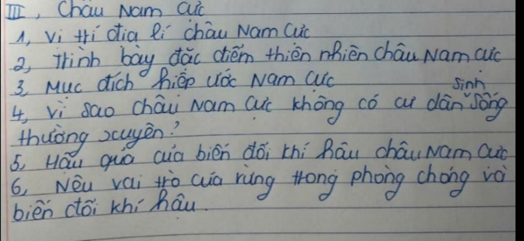 `-` Châu Nam Cực không có cư dân sinh sống thường xuyên vì: