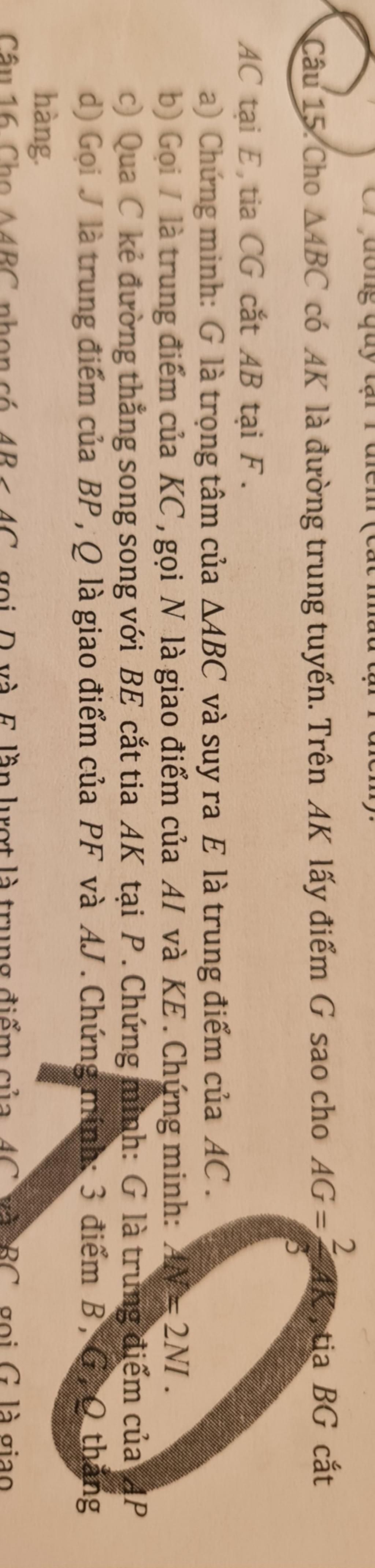 Câu 15. Cho A4BC có AK là đường trung tuyến. Trên AK lấy điểm G sao cho AG=-4K, tia BG cắt