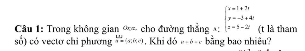 Từ phương trình tham số của đường thẳng ` Delta ` ta có ` : `