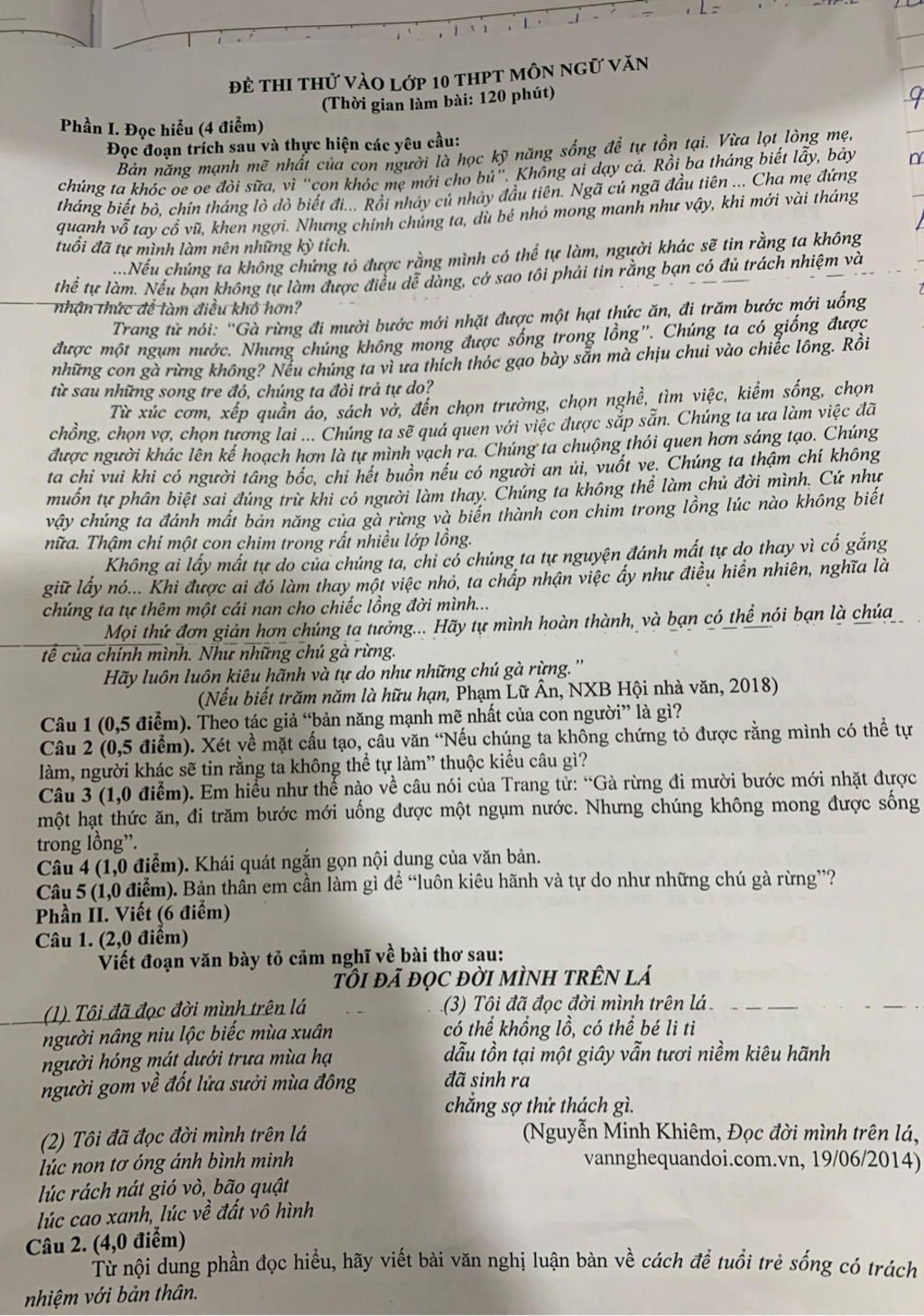 ĐỀ THI THỬ VÀO LỚP 10 THPT MÔN NGỮ VĂN