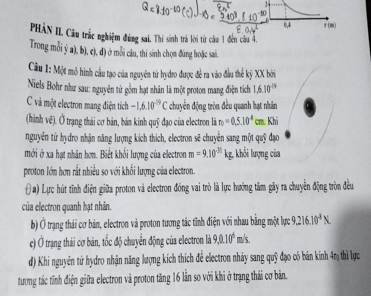 a) Lực hút tĩnh điện giữa p và e đóng vai trò là lực hướng tâm gây ra chuyển động tròn đều của e quanh hạt nhân.
