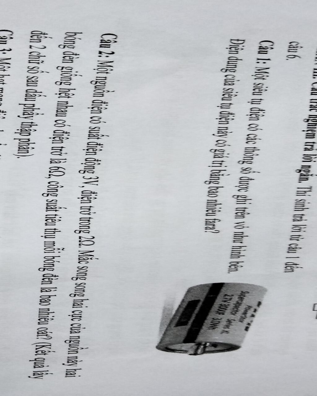 Câu 1: Một siêu tụ điện có các thông số được ghi trên vỏ như hình bên.