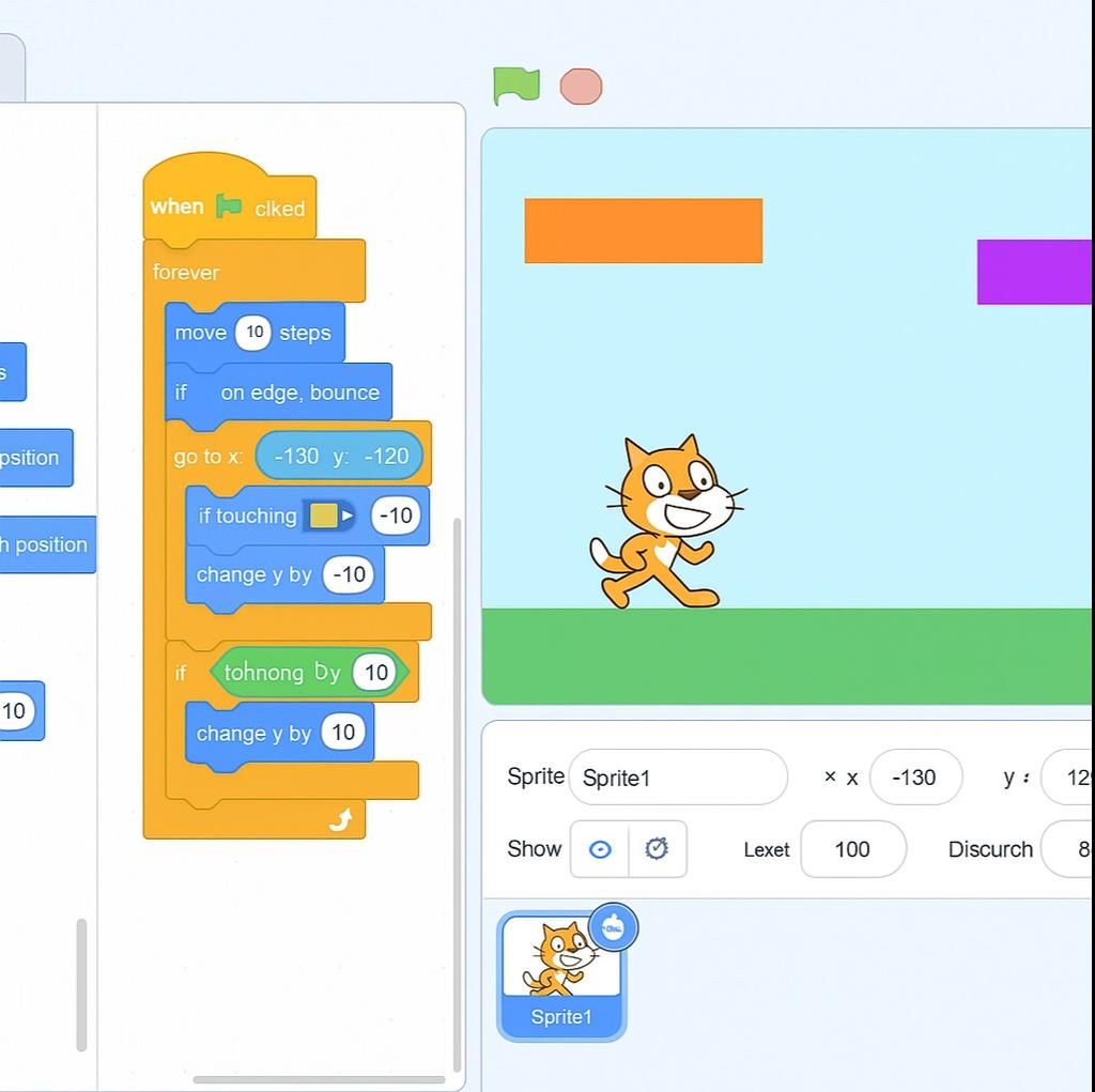 trong phần mềm scratch , hãy làm ví dụ 1 trò chơi ( gửi hình ảnh )