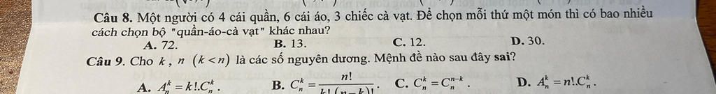 Có `4*6*3=72` cách chọn mỗi thứ một món.