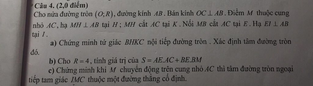 Cho nửa đường tròn (O;R), đường kính AB . Bán kính OC L AB. Điểm M thuộc cung