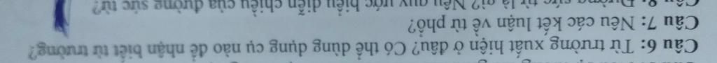 `-` Cách nhận biết được từ trường là: người ta dùng kim nam châm để nhận biết từ trường. Đưa kim nam châm thử trong môi trường không xác định nếu kim nam châm bị lệch khỏi hướng Nam Bắc thì chứng tỏ không gian ấy có từ trường và ngược lại.