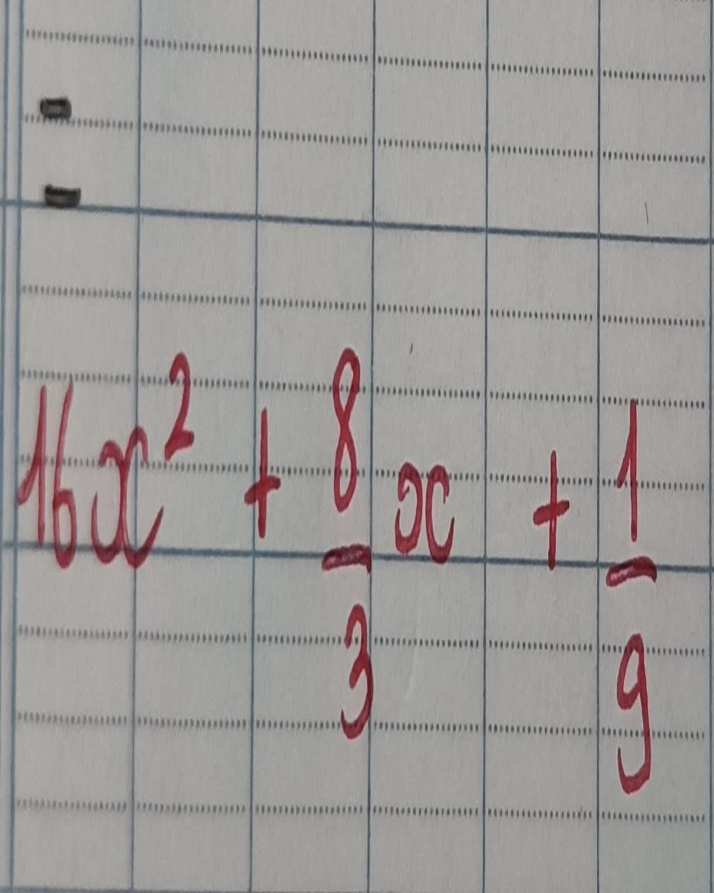 16x2 + 8/3x + 1/9 = ( 4x + 1/3 ) mũ 2
