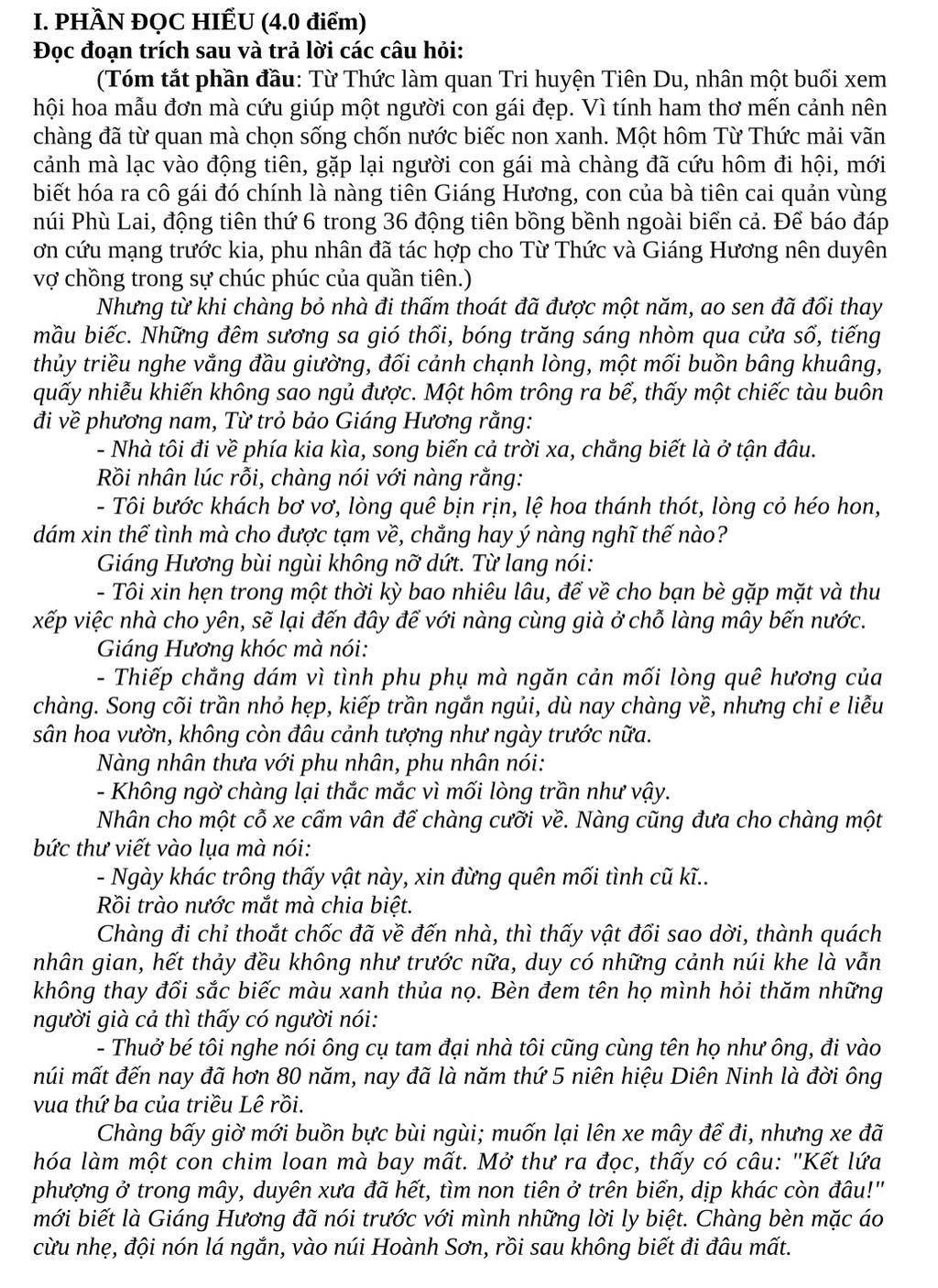 + Cuộc sống nơi tiên giới tuy đẹp đẽ nhưng không thể xóa nhòa tình cảm với quê cha đất tổ.