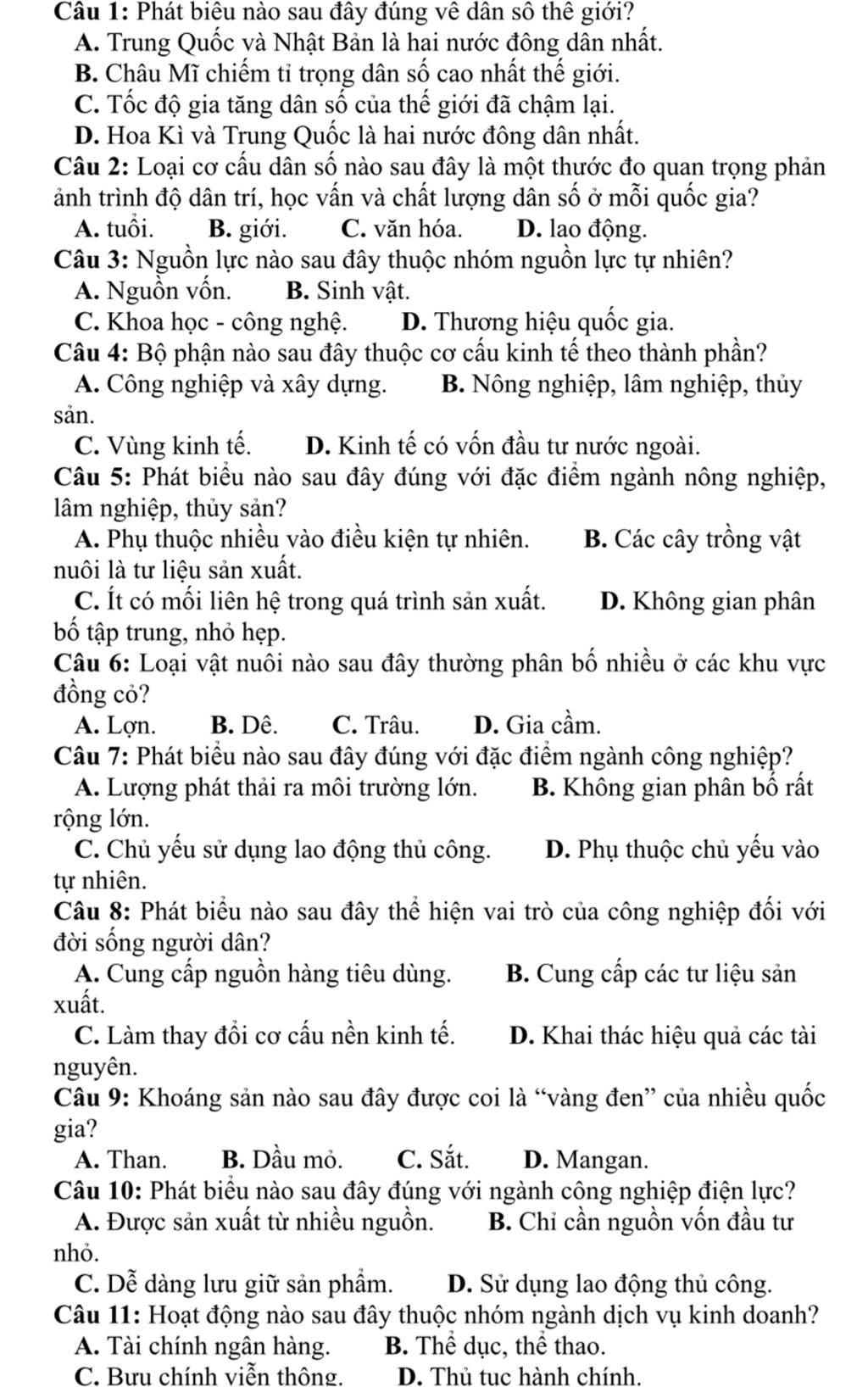 C10. A. Được sản xuất từ nhiều nguồn.