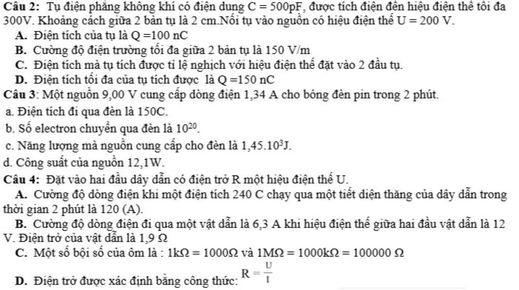 `Q=CU -> U=Q/C ->` Điện tích mà tụ tích được tỉ lệ thuận với hiệu điện thế đặt vào hai đầu tụ