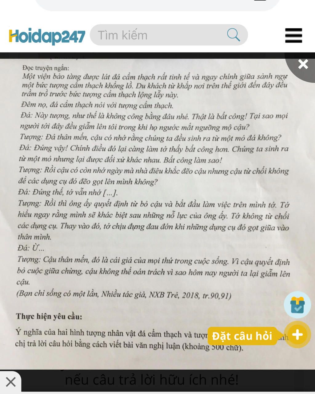 Ý nghĩa của hai hình tượng nhân vật đá cẩm thạch và tượng cẩm thạch là gì? Em trả lời câu hỏi bằng cách viết bài văn nghị luận