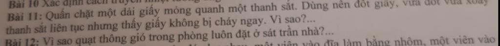 Giấy không cháy ngay vì khi vừa đốt vừa xoay thanh sắt thì nhiệt lượng giấy nhận được sẽ truyền cho thanh sắt do sắt dẫn nhiệt tốt.