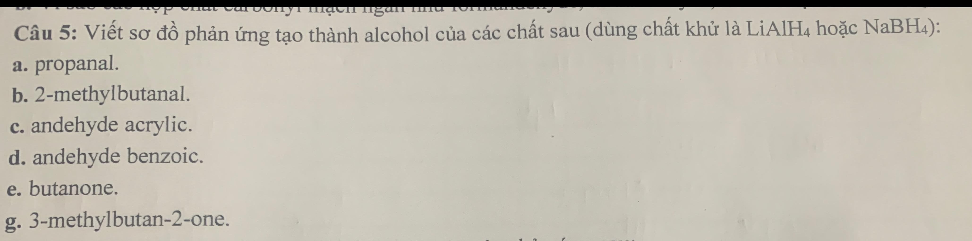 $CH_3CH_2CH(CH_3)CHO \xrightarrow{\text{LiAlH}_4 \text{ hoặc } NaBH_4} CH_3CH_2CH(CH_3)CH_2OH$