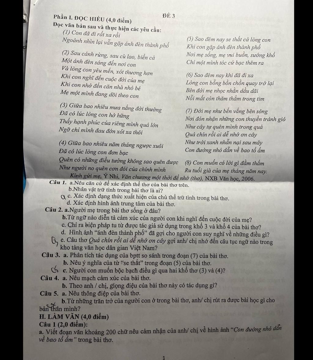 (Kính gửi mẹ, Ý Nhi, in trong Văn chương một thời để nhớ, NXB Văn họcHà Nội, 2006)