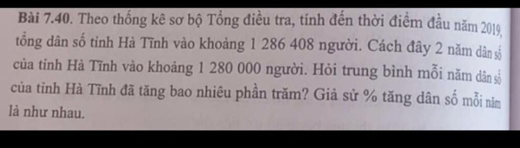 công thức là ( dân số cuối năm chia dân số đầu năm )^(1/n) -1 `n` là `2` năm , áp dụng vào công thức