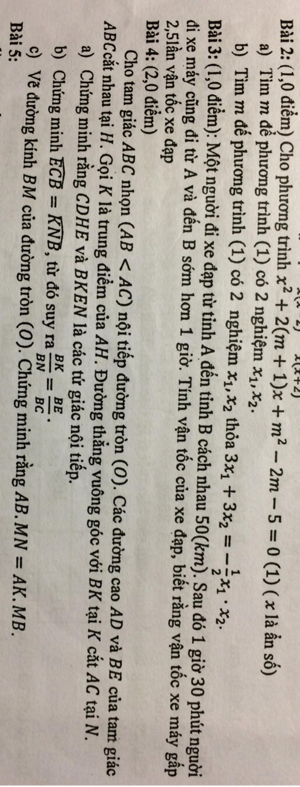 mấy bạn ơi giải hộ mình bài 3 với phần b bài hình c/m 2 góc = nhau với ạ (mình mất gốc ko tìm ra cách giải cả 2 bài) và cho mình hỏi câu viete mình ra m^2 =+-22/5 đúng ko ạ