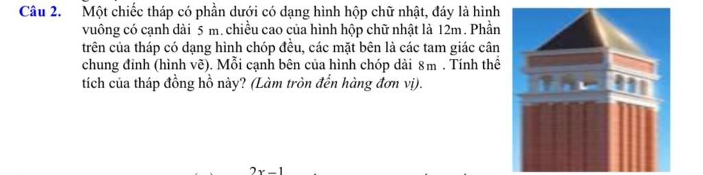 Một chiếc tháp có phần dưới có dạng hình hộp chữ nhật, đáy là hình