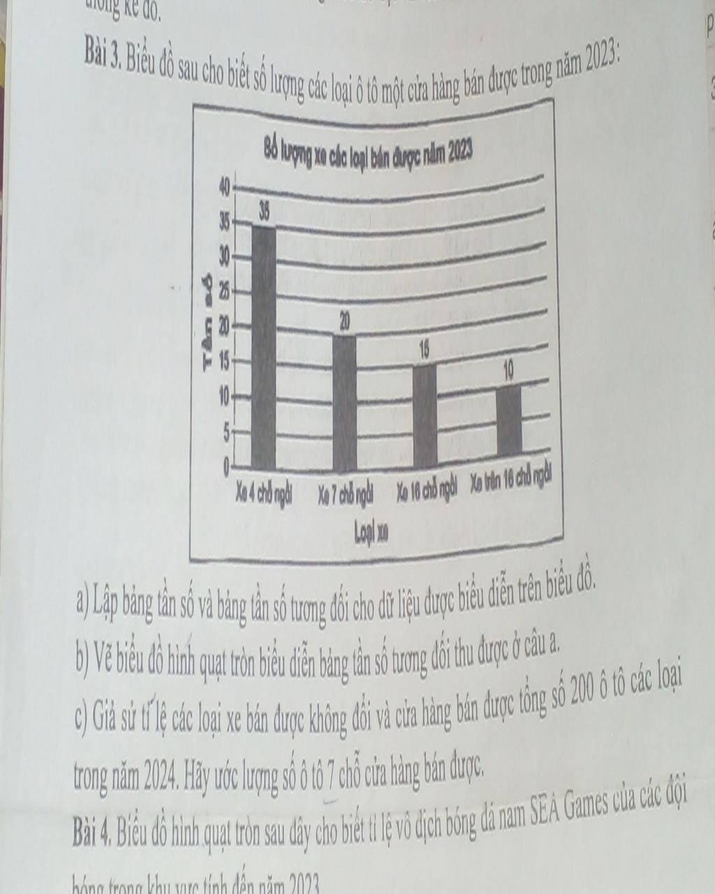 Bài 3. Biểu đồ sau cho biết số lượng các loại ô tô một cửa hàng bán được trong năm 2023