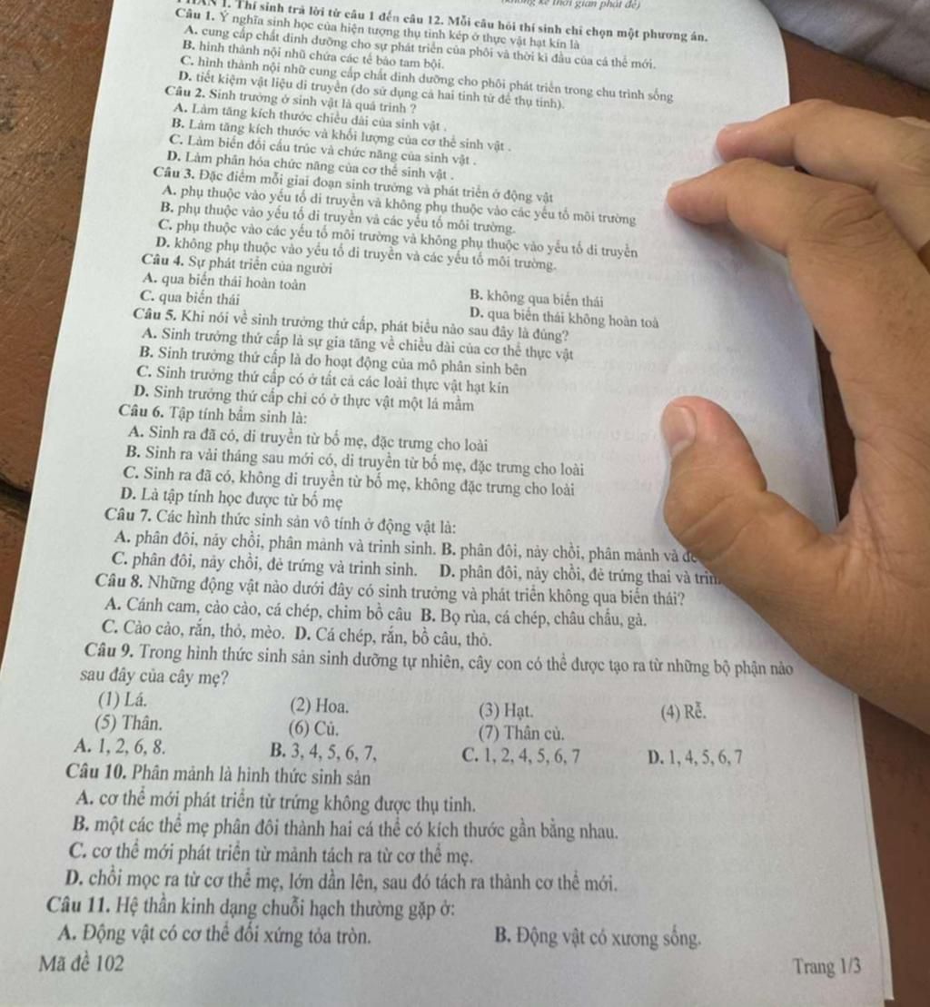Thí sinh trả lời từ câu 1 đến câu 12. Mỗi câu hỏi thí sinh chỉ chọn một phương án.