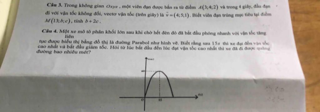 Câu 3. Trong không gian Oxyz, một viên đạn được bắn ra từ điểm 4(3;4;2) và trong 4 giây, đầu đạn