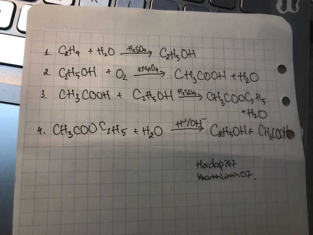 $CH_3COOC_2H_5+H_2O\xrightarrow{H^+} CH_3COOH+C_2H_5OH$
