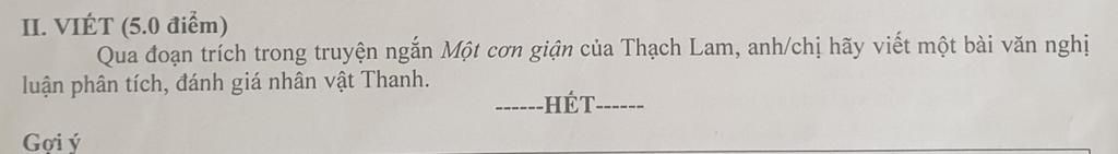 Qua đoạn trích một cơn giận của thạch lam hay viết một bài văn nghị luận phân tích đánh giâ nhân vật thanh