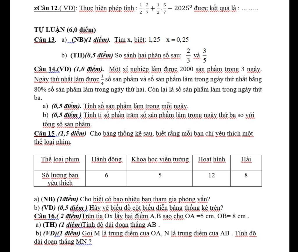 Câu 13. a) (NB)(1 điểm). Tìm x, biết: 1,25−x=0,25