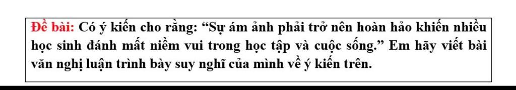 Trong cuộc sống hiện đại, với sự phát triển nhanh chóng của xã hội và các yêu cầu ngày càng cao trong học tập, nhiều học sinh trở nên ám ảnh với mục tiêu hoàn hảo, từ đó đánh mất đi niềm vui trong học tập và cuộc sống. Ý kiến "sự ám ảnh phải trở nên hoàn hảo khiến nhiều bạn học sinh đánh mất niềm vui trong học tập và cuộc sống" không chỉ phản ánh thực trạng của học sinh hiện nay mà còn là một vấn đề cần phải nhìn nhận, suy ngẫm.