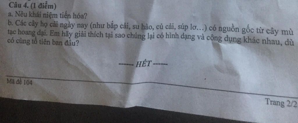 các cây họ cải ngày nay nhiw bắp xu hào... có nguồn gốc từ cây mù tạc hoang dại em hãy giải thích tại sao chúng có hình dạng công dụng khác nhau dù có cùng tổ tiên ban đầu
