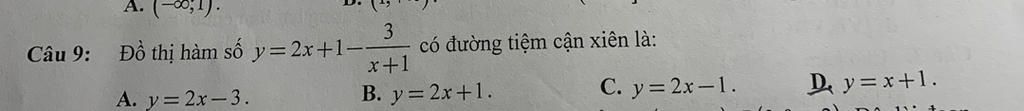Để tìm tiệm cận xiên `y=mx + c`, ta tính các giới hạn: