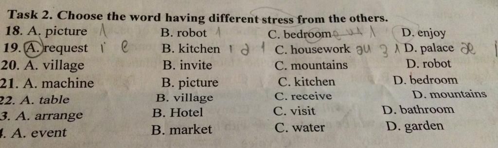 `19 - A`: trọng âm rơi vào âm 2 (request)