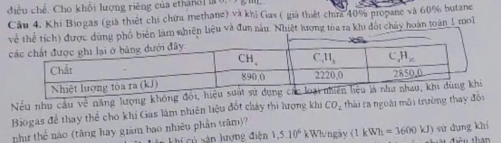 Mà 1 mol khí biogas tỏa ra lượng nhiệt là $890(kJ)$