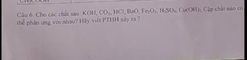 `=>` Ta có các phương trình với các chất phản ứng được với nhau: