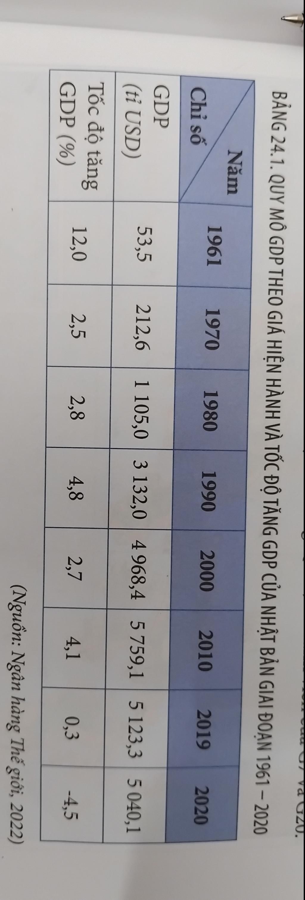 BẢNG 24.1. QUY MÔ GDP THEO GIẢ HIỆN HÀNH VÀ TỐC ĐỘ TĂNG GDP CỦA NHẬT BẢN GIAI ĐOẠN 1961 – 2020