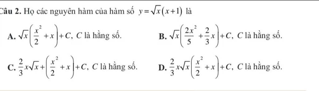 `=2/5 .x^2\sqrt(x) + 2/3 .x\sqrt(x) + C`