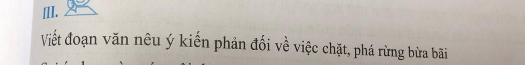 Chặt, phá rừng bừa bãi là một hành động thiếu tôn trọng đối với thiên nhiên. Thứ nhất, rừng là một phần giúp cân bằng hệ sinh thái. Thứ hai, trong rừng có rất nhiều động vật cần cây cối để sống sót. Thứ ba, chặt hoặc phá rừng có thể gây biến đổi khí hậu. Vậy nên, chúng ta cần "trồng cây gây rừng", bảo vệ các khu rừng, giảm thiểu các hành động như chặt, phá rừng, đốt rừng,.....Rừng có thể cung cấp cho chúng ta nguồn tài sản vô giá. Nhưng trên hết, chúng ta không nên khai thác quá nhiều.