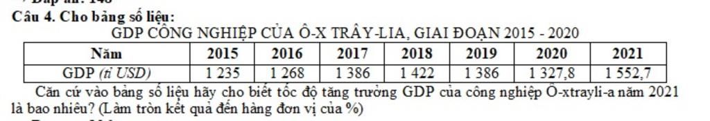 Tốc độ tăng trưởng GDP của công nghirepj Ô$-\:$xtray$-\:$li$-\:$a năm `2021`:$\\$ $\dfrac{1\,552,7-1\,235}{1\,235}\times100\approx26(\%)$