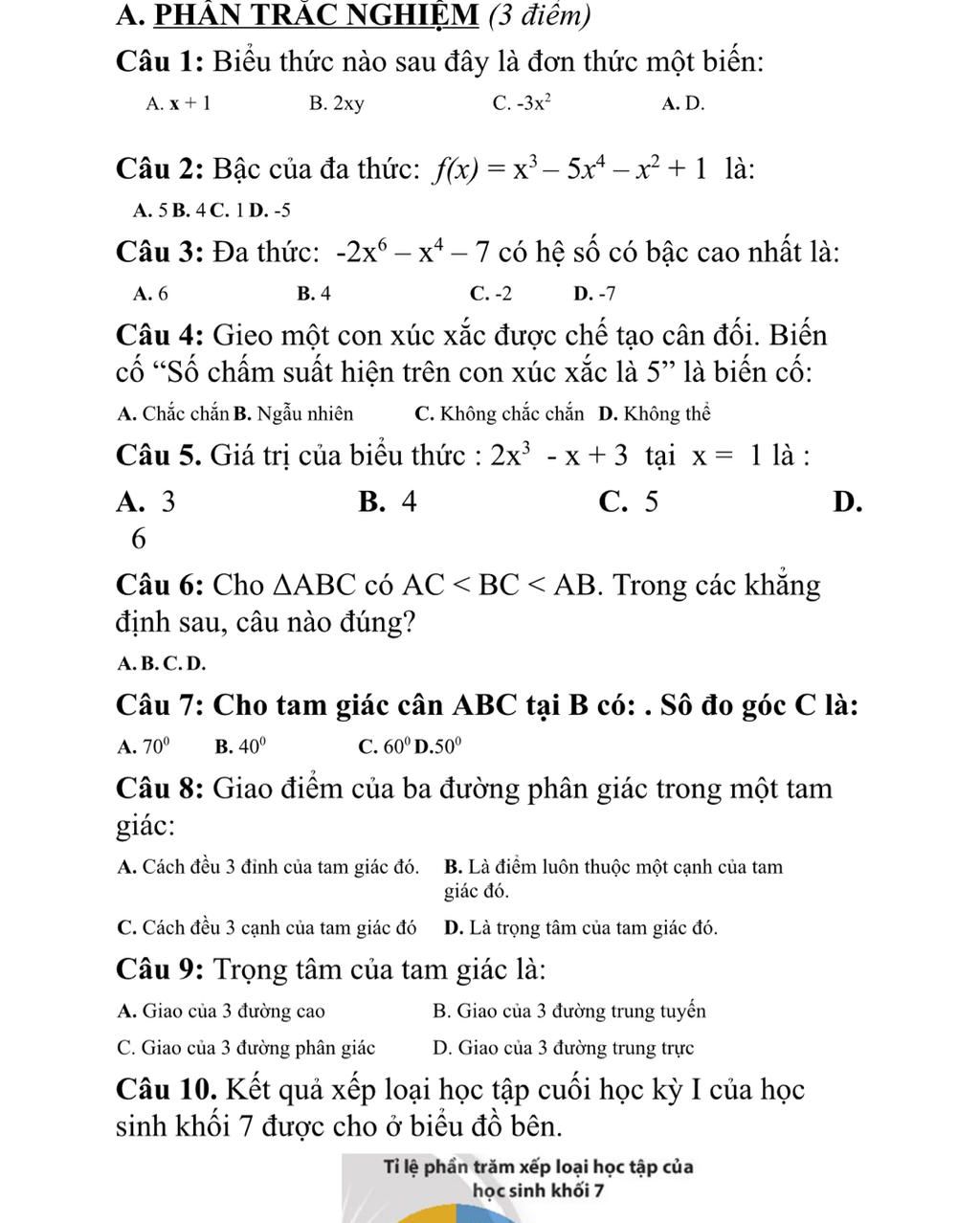 A. PHÂN TRẮC NGHIỆM (3 điểm)
