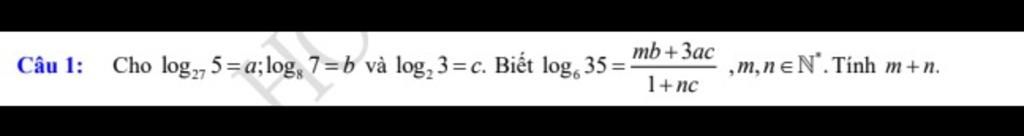 Có: `log_{6}35=log_{6}7+log_{6}5`