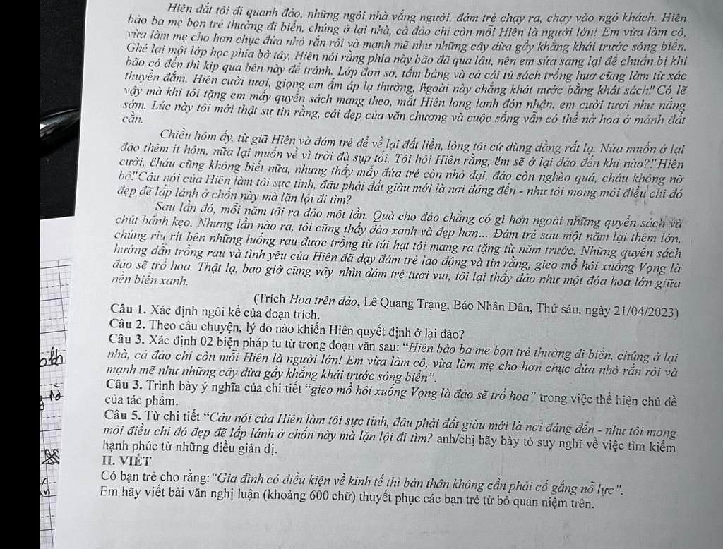 Hiền dắt tôi đi quanh đảo, những ngôi nhà vắng người, đám trẻ chạy ra, chạy vào ngó khách. Hiện